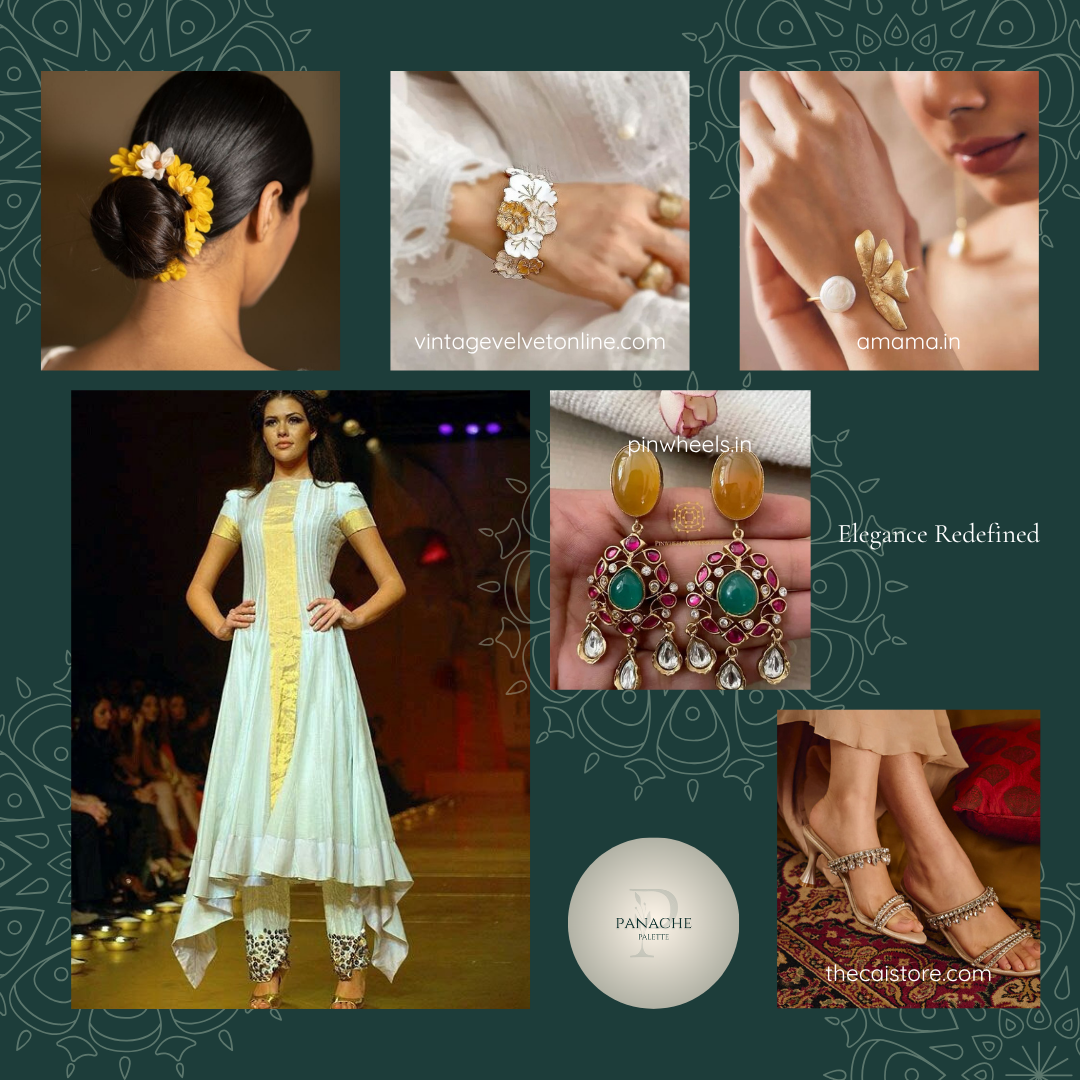 Curated by: Panache Palette This ensemble brings together serene tones, delicate prints, and soft structure to create a look thatβs refreshingly modern yet rooted in traditional grace. Perfect for elegant daywear, luncheons, or art-inspired gatherings, it celebrates understated beauty with… Continue reading