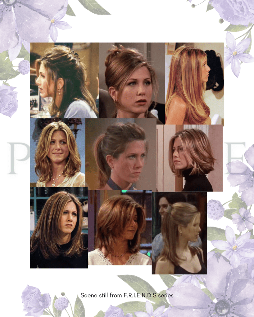 The “Rachel” haircut became a global phenomenon. Layered, voluminous, and chic, it became one of the most requested hairstyles of the 1990s. Jennifer Aniston’s hair — whether in that layered cut, soft waves, or sleek updos — played a crucial role in shaping Rachel’s style identity.