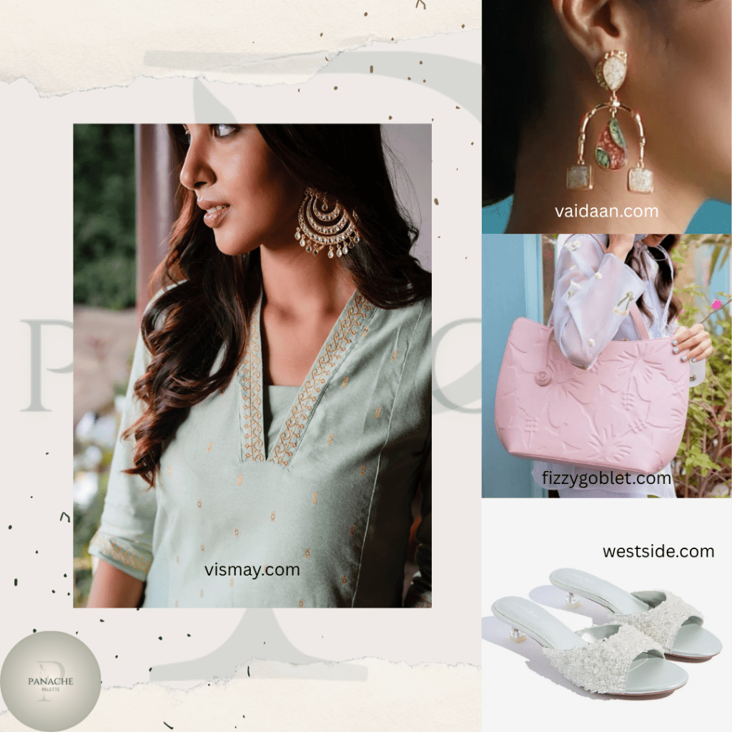 These ivory kitten heels with delicate beaded embellishments add a sparkly finish to the outfit. Their minimal yet festive design complements the kurta’s elegance and supports a polished look from head to toe.